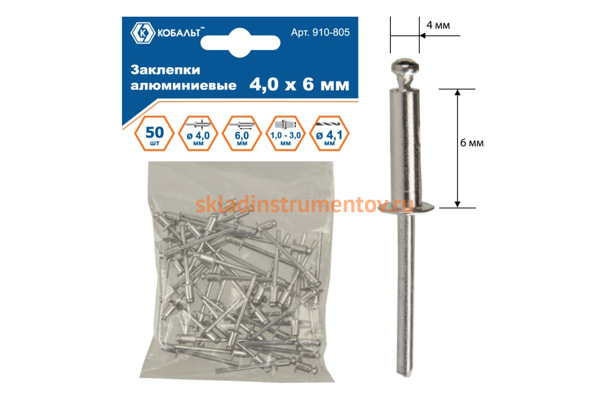 Заклепки вытяжные алюминиевые КОБАЛЬТ 910-805 применяются для скрепления между собой листовых материалов. Устанавливаются в отверстие, после чего расклепываются со стороны стержня, образуя прочное неразъемное соединение.
