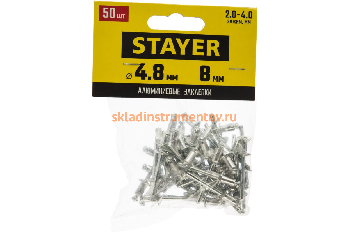 Алюминиевая заклепка Stayer 3120-48-08 широко применяется для скрепления металлических и пластмассовых листовых материалов, кожаных изделий, деталей бытовой техники, фурнитуры и т.д. С ее помощью можно получить надежное неразъемное герметичное соединение. Преимущество ее использования заключается в том, что для установки требуется лишь односторонний доступ к деталям. Монтируется после предварительного сверления с помощью специального инструмента - заклепочника.