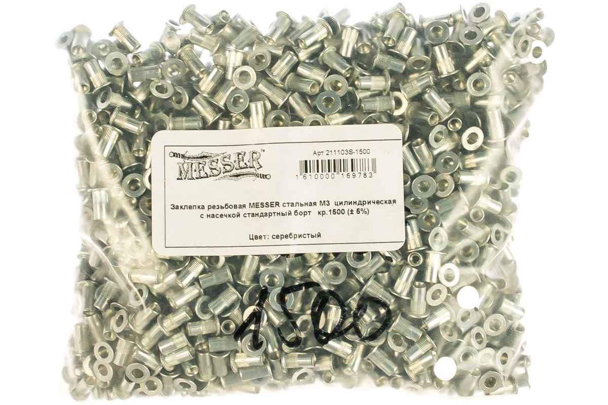 —Заклепка резьбовая стальная цилиндрическая с насечкой (1500 шт; М3; стандартный борт) MESSER 211103S-1500—