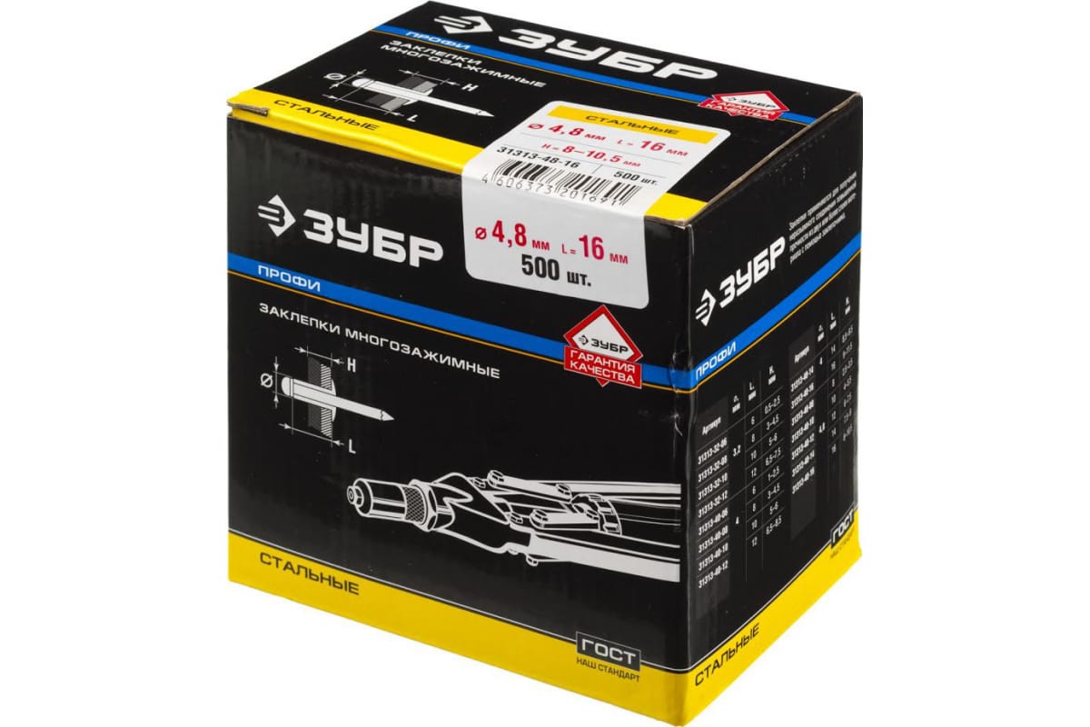 —Заклепки Зубр ПРОФИ стальные 4,8x16мм, 500шт 31313-48-16—