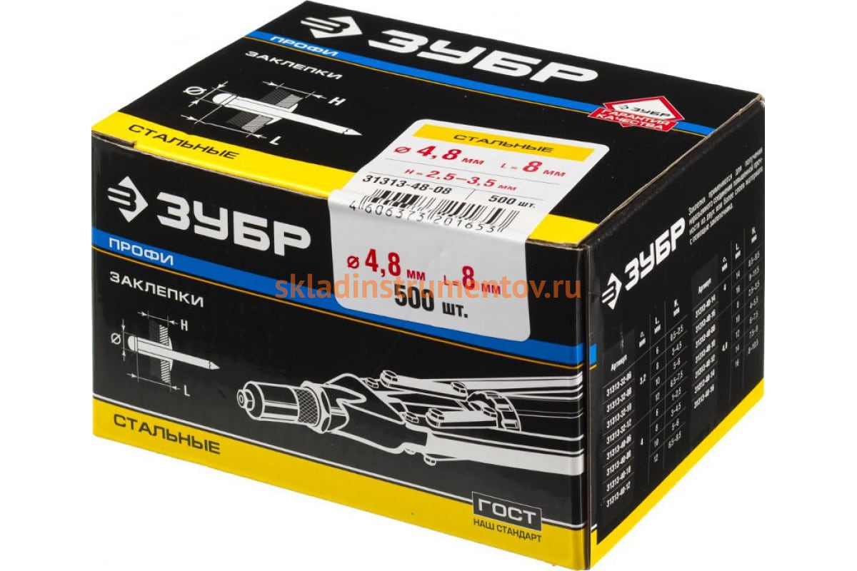 —Заклепки Зубр ПРОФИ стальные 4,8x8мм, 500шт 31313-48-08—