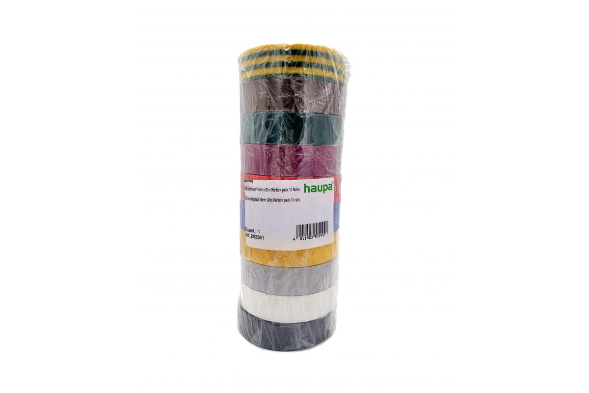 Изолента ПВХ (цвет радужный, ширина 19мм, длина 20 м, d 74 мм, упаковка 10 штук) HAUPA 263861 имеет широкую сферу применения. Ленты выполнены в различном цвете, что позволяет использовать их для незаметной и надежной фиксации. Размеры тубы из 10 рулонов: 190х74х74 мм.