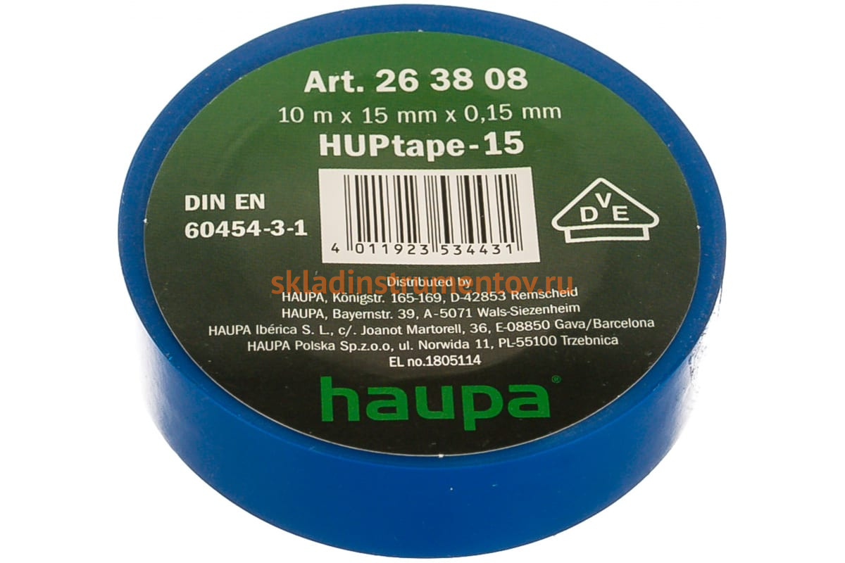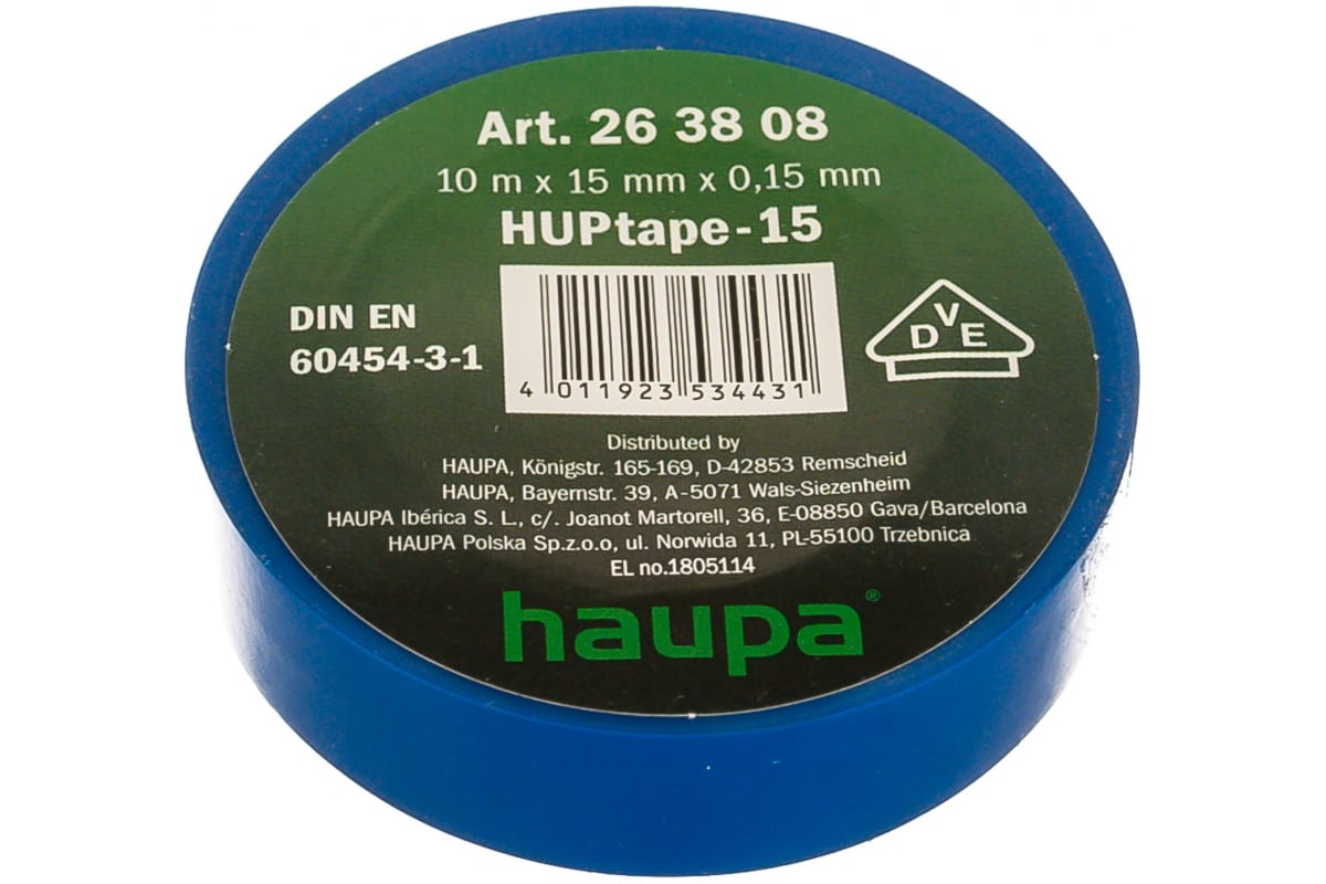 Изолента HAUPA ПВХ синий 15ммх10 м, d 60 мм 263808 представляет собой универсальное приспособление для разметки проводов, их эдектроизоляции, а также ремонта и создания связок. Материал изоленты - ПВХ. Изделие обладает следующими преимуществами: огнестойкость, самозатухание, влагозащита, высокая адгезия и гибкость.