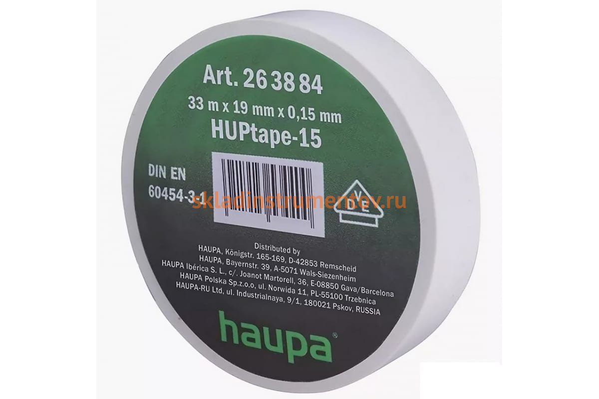—Изолента ПВХ HAUPA 19 мм x 33 м, цвет белый 263884