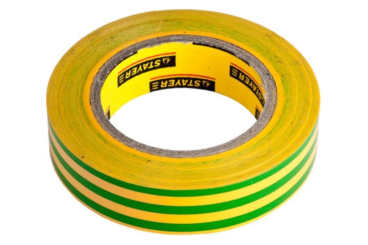 Желто-зеленая ПВХ изолента 5000В 15ммх10м STAYER MASTER 12291-S-15-10 - специальная клеящая лента из поливинилхлорида яркой расцветки. Служит для связки, изоляции и маркировки электропроводов. Напряжение на пробой составляет 5000 В.