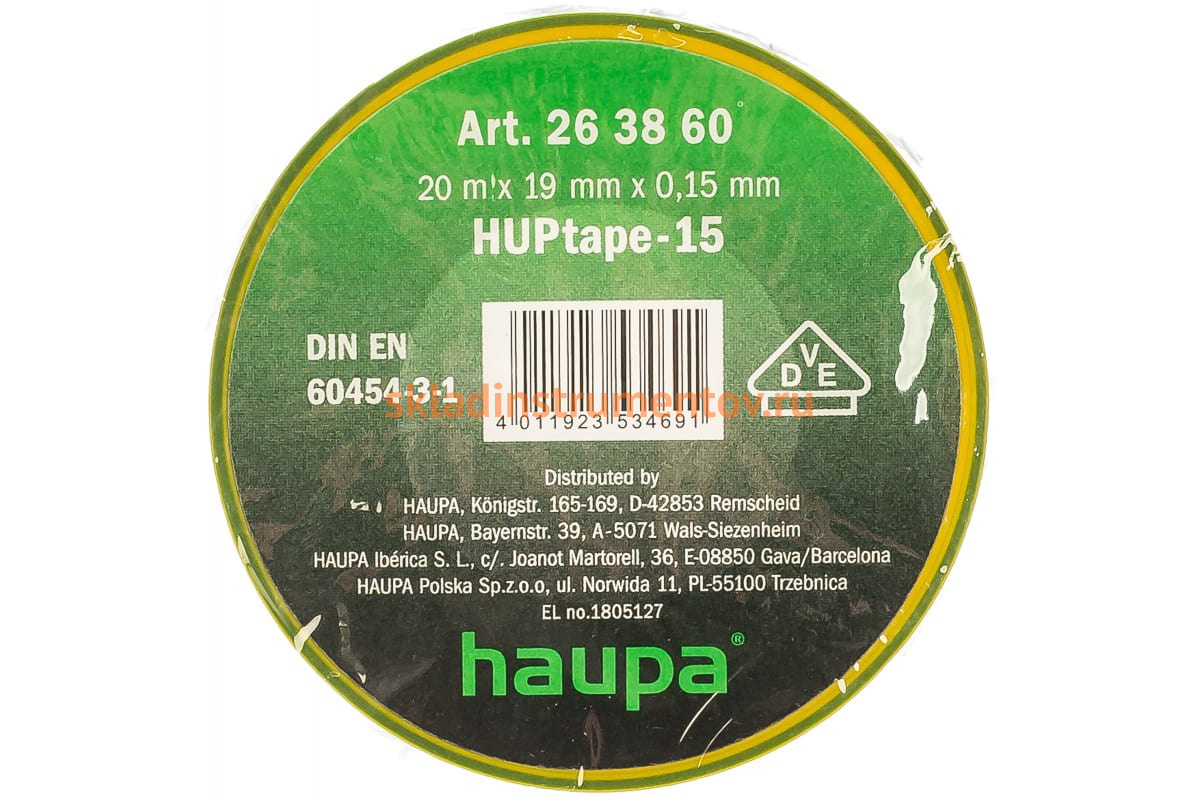 Изолента HAUPA ПВХ желто-зеленый 19 ммх20 м, d 74 мм 263860 предназначена для электроизоляции проводов и кабелей. Изолента желто-зеленого цвета изготовлена из ПВХ. Изделие отличается гибкостью, огнестойкостью, защитой от воздействия влаги.