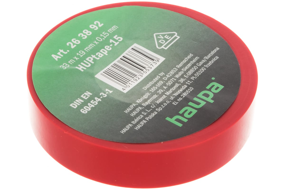 Изолента ПВХ HAUPA 19 мм x 33 м, цвет красный 263892