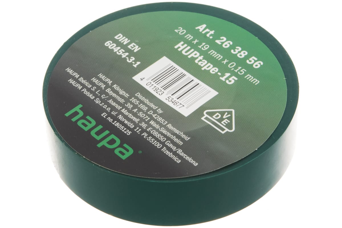 —Изолента ПВХ HAUPA цвет зеленый, шир.19 мм, длина 20 м, d 74 мм 263856