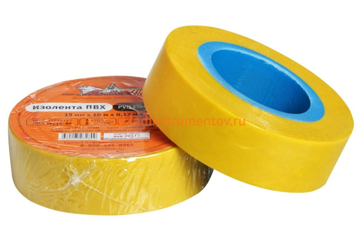 Изолента ПВХ Airline желтая, 19 мм х 10 м AIT-P-16