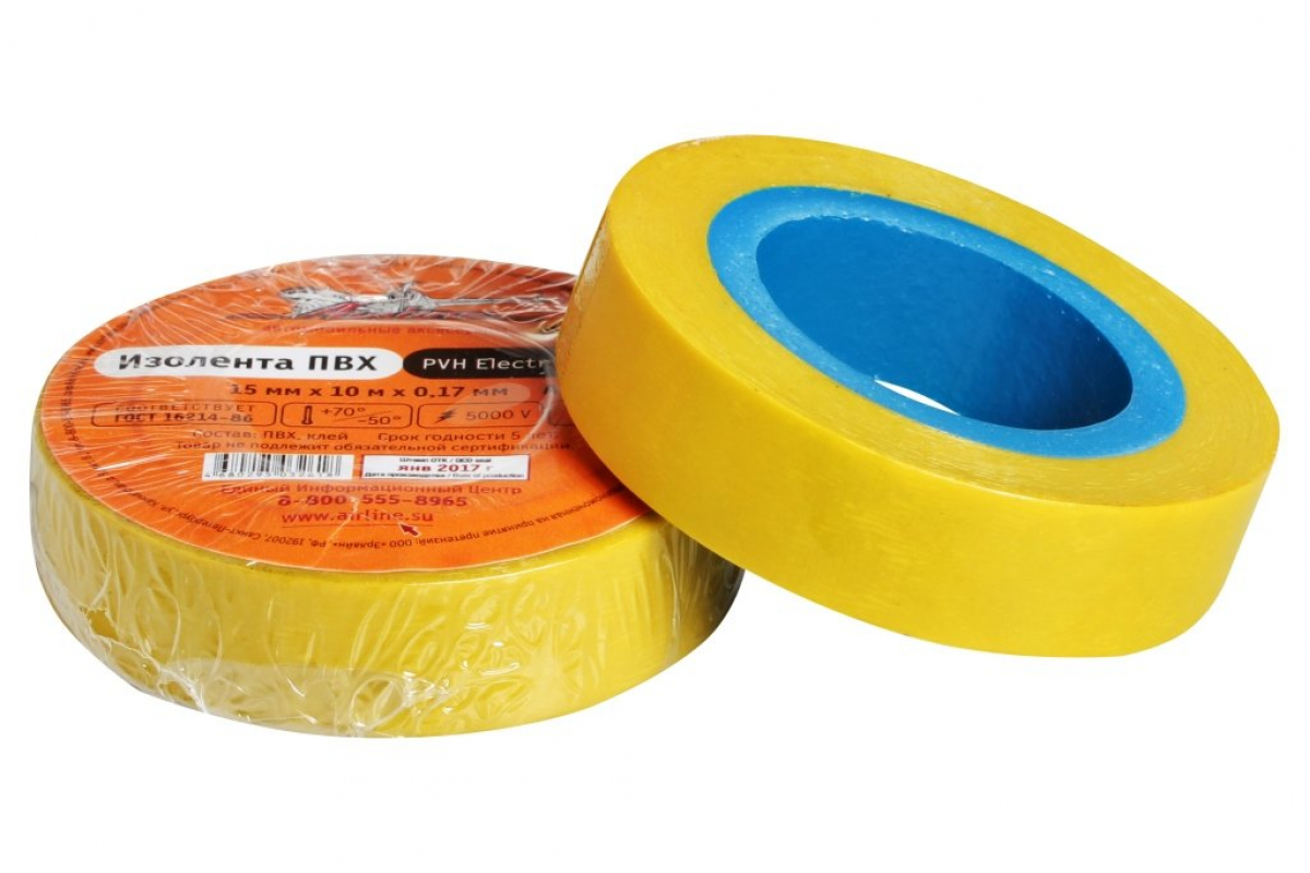 —Изолента Airline ПВХ, желтая, 15мм х 10м AIT-P-06