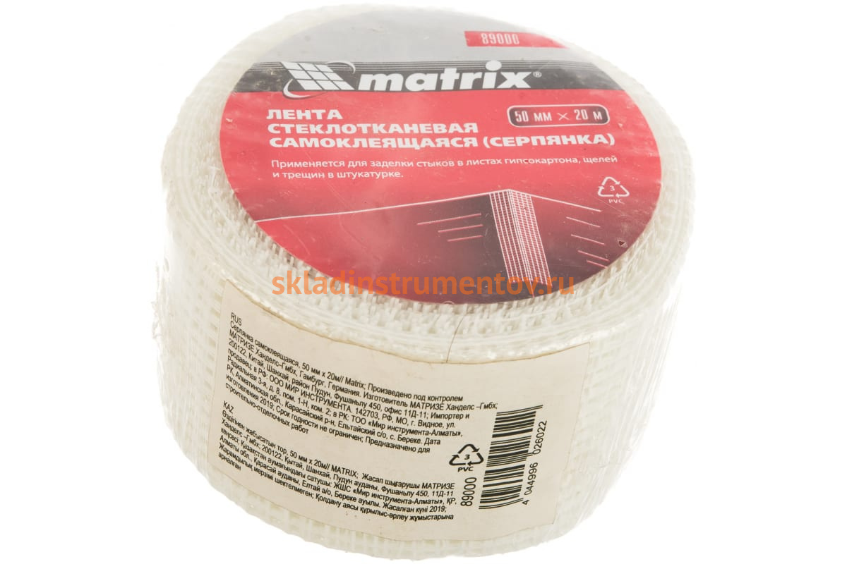 Серпянка самоклеящаяся MATRIX 89000 представляется собой стеклотканевую ленту с клейким внутренним слоем. Используется для армирования швов, трещин на стенах или потолке. Отлично подходит для применения перед покраской или поклейкой обоев.