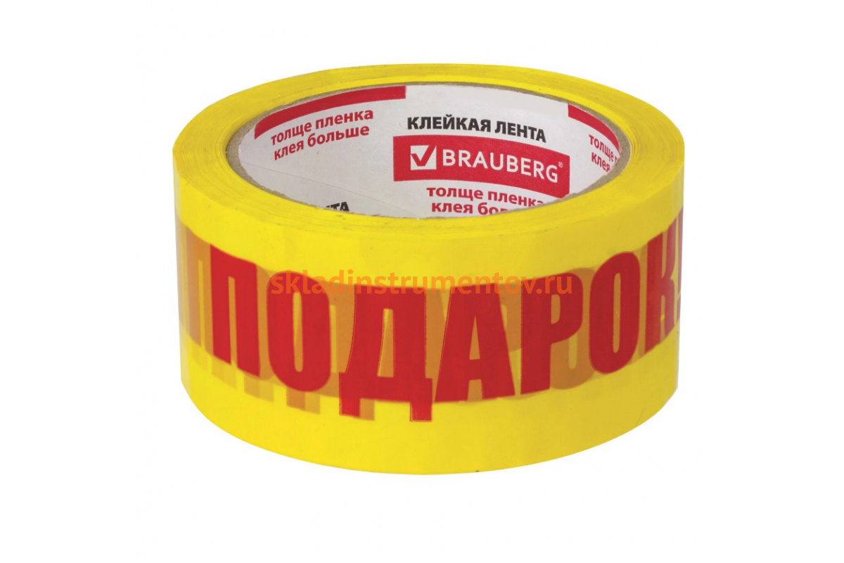 —Упаковочная клейкая лента BRAUBERG ПОДАРОК 48 мм х 66 м, желтая, 45 микрон 440156  —