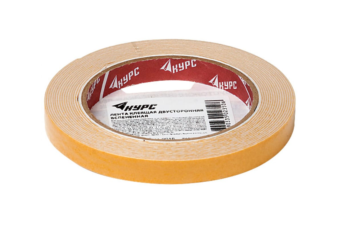 Монтажная клейкая лента на вспененной основе КУРС белая, 15мм х 10м 11784