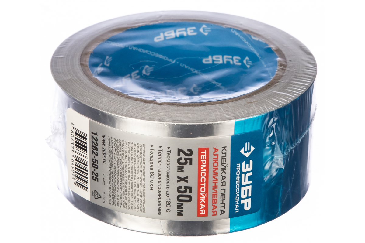 Алюминиевая клеящая лента 12262-50-25 Зубр используется при установке изоляции со светоотражающими свойствами. С помощью ленты оклеиваются все стыки и швы, за счет чего сохраняется тепло и не может проникнуть пар. Благодаря фольге из алюминия появляется возможность использовать ленту в условиях повышенных температур до +120°С. Легко наклеивается и не образует пузырей.
