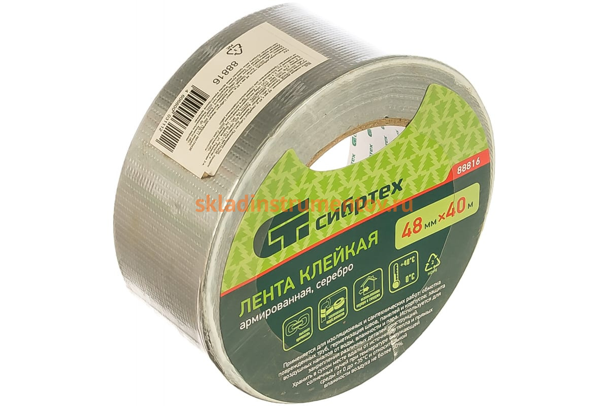 Клейкая армированная лента СИБРТЕХ 50ммх40м серебро 88816 используется в банях, саунах и системах кондиционирования для создания герметичного соединения стыков и швов при термоизоляции. Алюминиевая клейкая лента армирована, обладает термостойкостью и морозоустойчивостью.