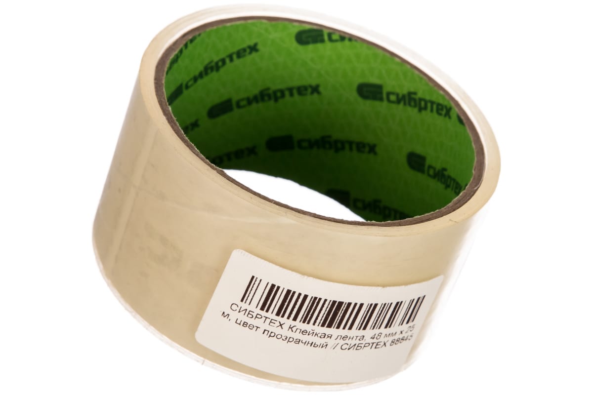 Клейкая лента СИБРТЕХ 48ммх25м прозрачный 88845 используется для мелкой починки вещей в быту, склеивания коробок, бумаги и пластика. Прозрачная лента из полиэтилена обладает клеевой основой с высокой адгезией. Размер - 48 мм х 25 м.