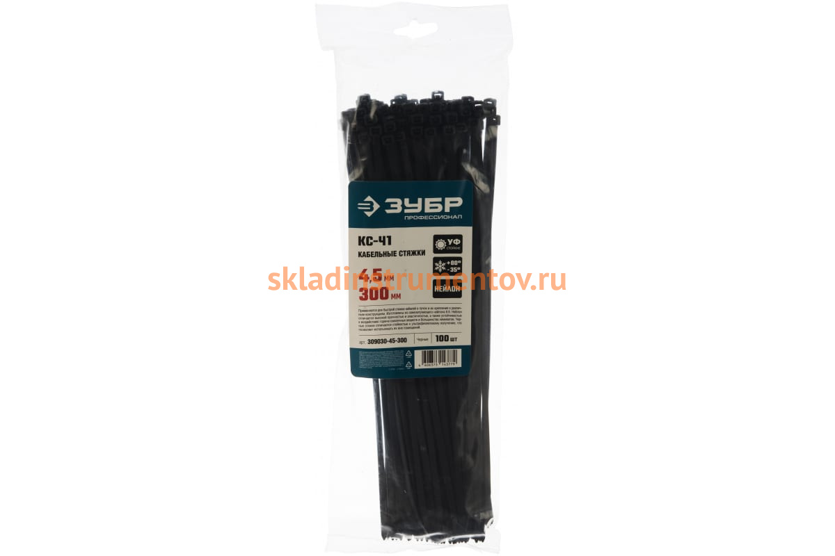 Нейлоновые хомуты Зубр черные, 4.5x300 мм, 100 шт. 309030-45-300