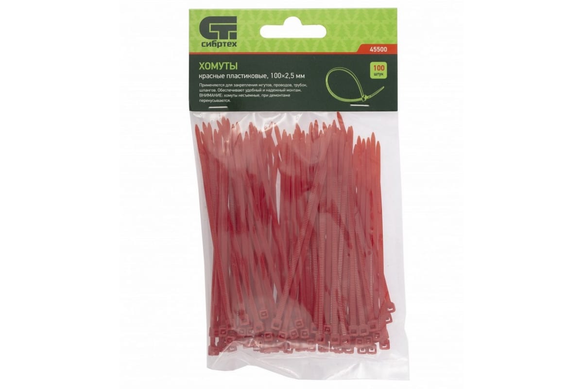 —Пластиковые хомуты СИБРТЕХ, 100 * 2,5 мм, красные, 100 шт 45500—