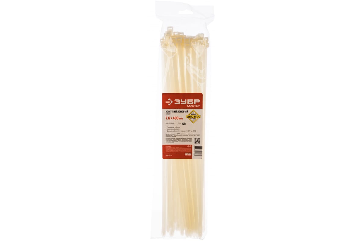 —Нейлоновые хомуты Зубр белые, 7.6x400 мм, 50 шт. 309010-76-400—