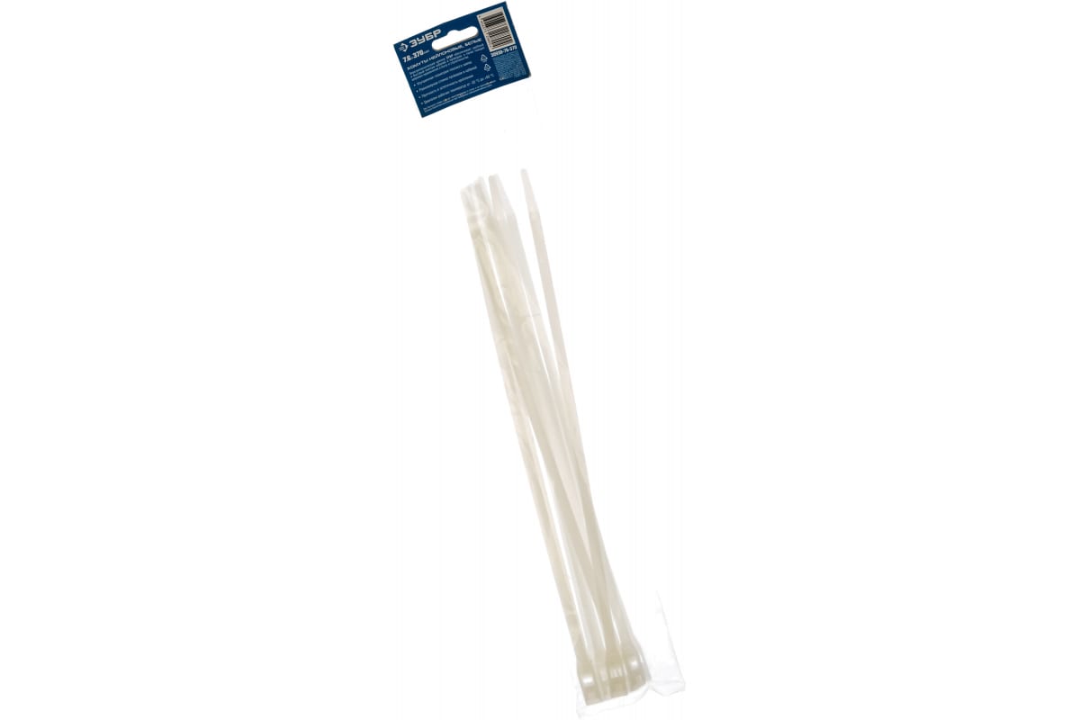 —Кабельные стяжки ЗУБР КОБРА белые, с плоским замком, 7.6 х 370 мм, 10 штук, нейлоновые 30930-76-370—