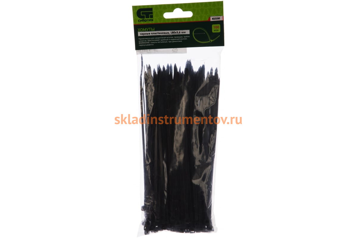 Хомут СИБРТЕХ 180 х 3,6 мм черный 100 шт 45550 служит для скрепления проводов, бандажирования и т.п. Изделие изготовлено из нейлона черного цвета. В упаковке 100 штук. Размер хомута - 180 х 3.6 мм.