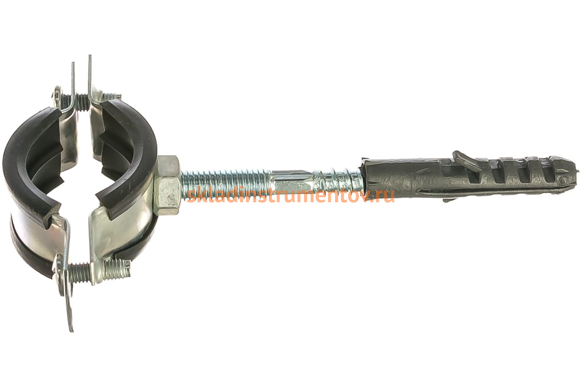 Сантехнический хомут СИБРТЕХ д/труб 25-28 3/4", резин, упл шпилька+дюбель 48165