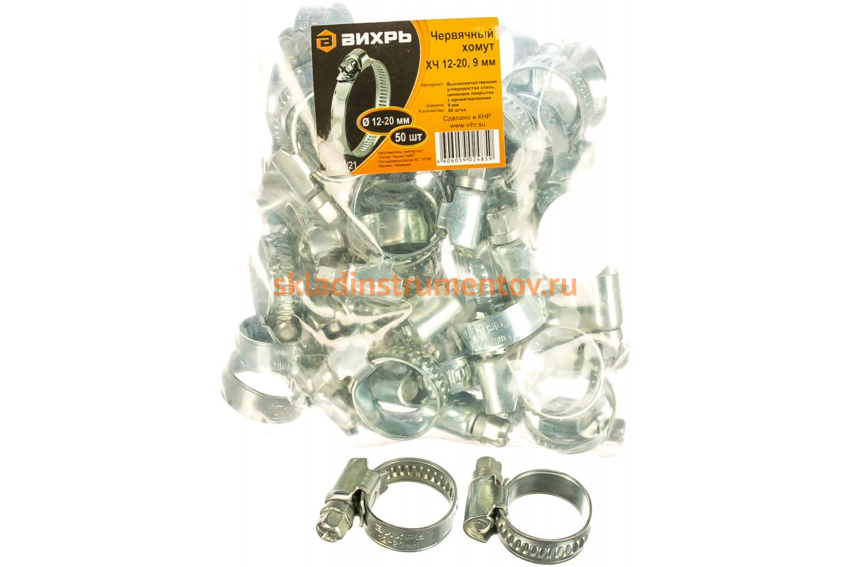 —Металлический червячный хомут Вихрь 12-20, 9мм 50 шт 73/9/1/21