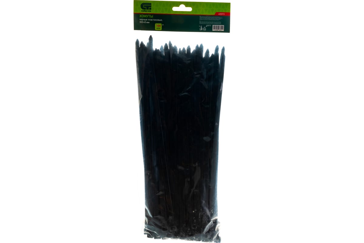 —Пластиковые хомуты СИБРТЕХ, 300 х 8 мм, черные, 100 шт 45573—