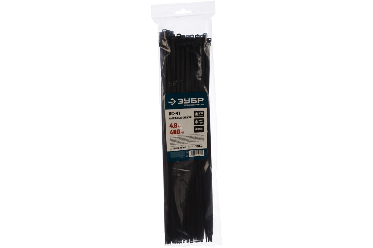 Нейлоновые хомуты Зубр черные, 4.8x400 мм, 100 шт. 309030-48-400