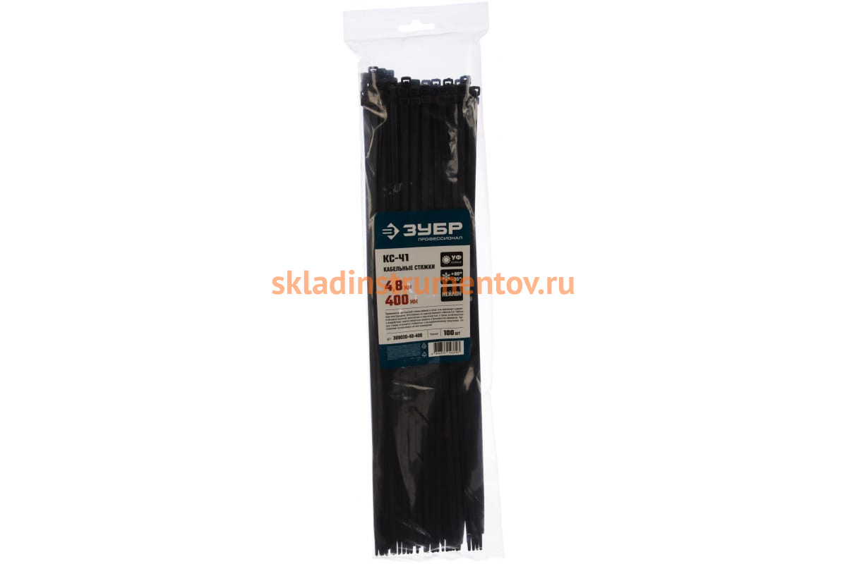 —Нейлоновые хомуты Зубр черные, 4.8x400 мм, 100 шт. 309030-48-400—