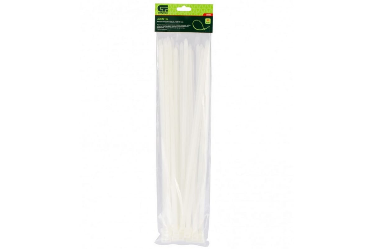 —Пластиковые хомуты СИБРТЕХ, 400 х 8 мм, белые, 50 шт 45582—