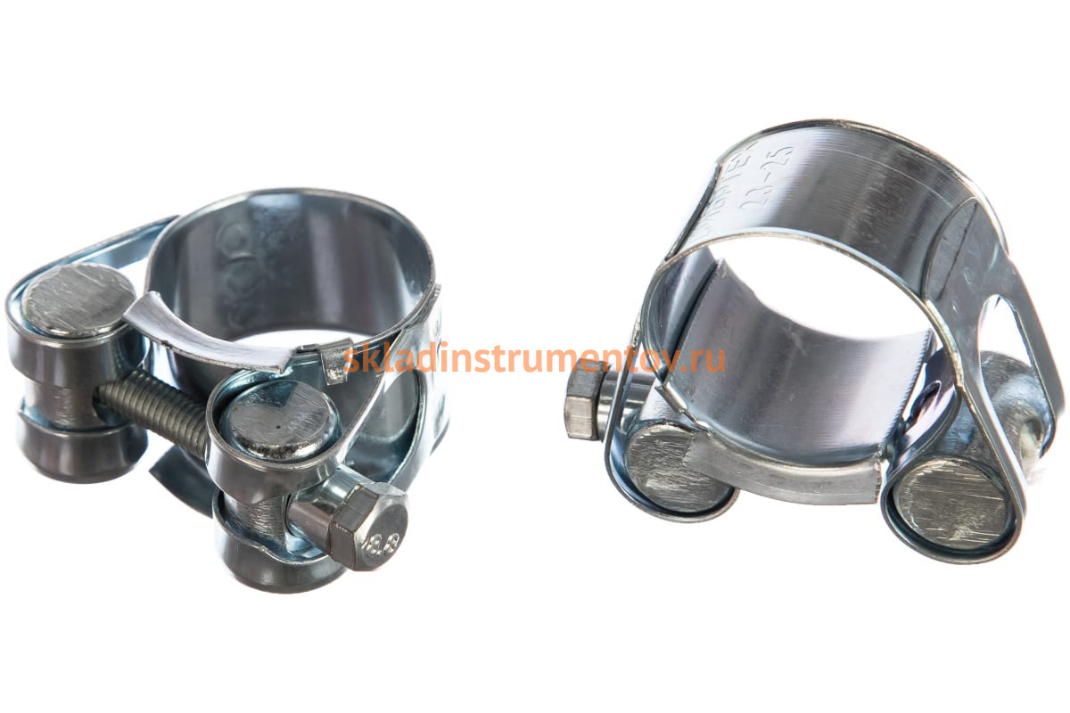 Металлические хомуты СИБРТЕХ, силовые, 23-25мм, ширина 18мм, шарнирный, W1, 2шт 47508