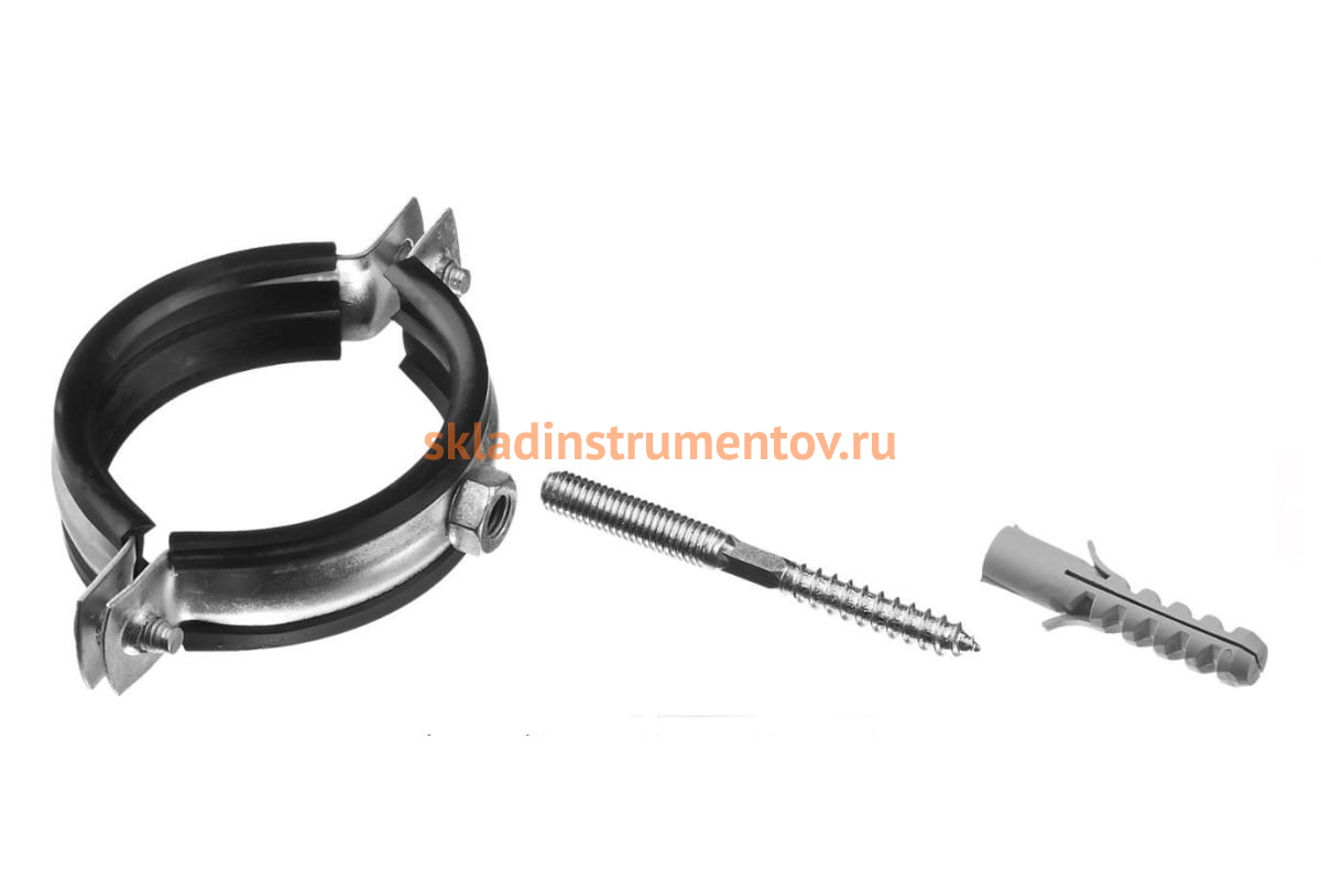 Трубный хомут с гайкой оцинк. в комп. с сантех. шпилькой и дюбелем ЗУБР 2 1/2" 1шт 37866-75-80_z01