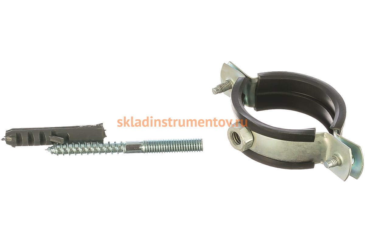 —Сантехнический хомут для труб СИБРТЕХ 48-53 1 1/2", резин, упл шпилька+дюбель 48168—