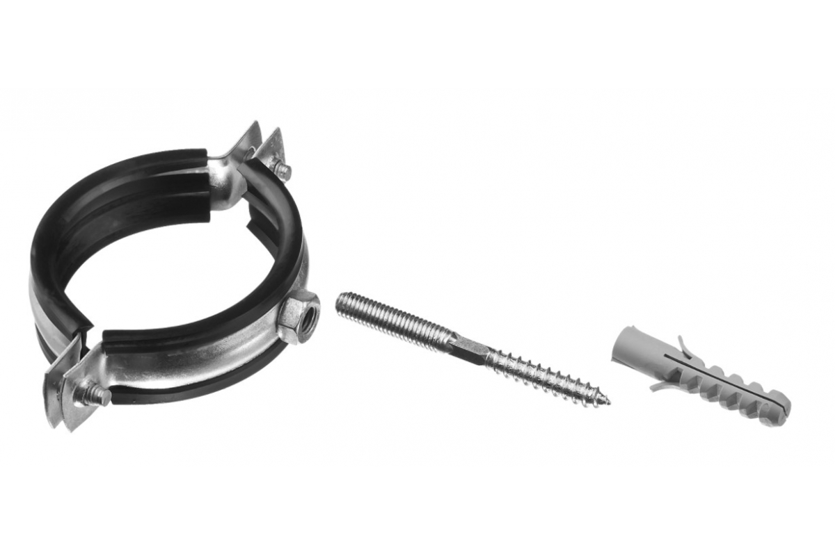 —Трубный хомут "МАСТЕР" Зубр оцинкованный в комплекте с сантехнической шпилькой и дюбелем, 1 1/2", 1 шт 37866-47-51—