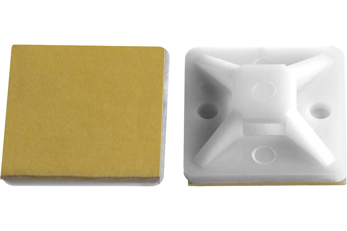 —Самоклеющаяся площадка под хомут-стяжку Зубр ПХС белая, 25 x 25 мм, 100 шт, нейлоновая, 30915-25—