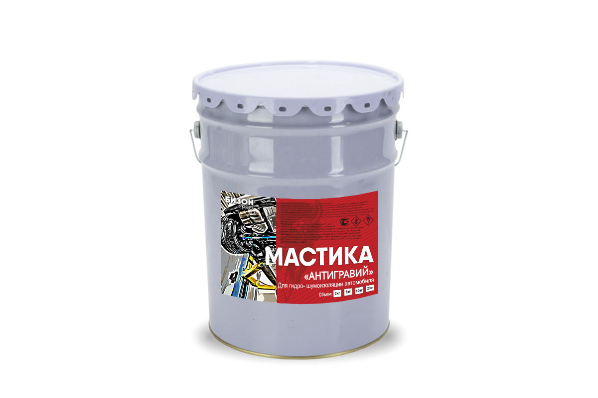 Мастика Бизон "Антигравий", 20л 901820 предназначена для обработки днища, нижней части бампера, колесных арок и порогов автомобиля. Продукт на битумной основе обеспечивает эффективную защиту металла от влаги, дорожной соли и повреждений (песок, гравий, камни). Состав легко наносится на подготовленную поверхность распылителем, валиком или кистью.