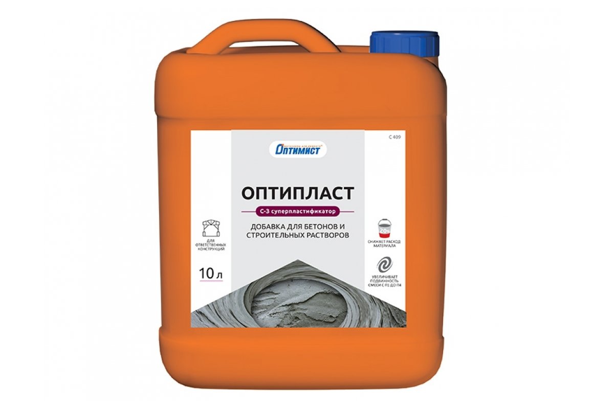 Пластифицирующая добавка Оптимист Оптипласт С409 10 л OPO010 применяется в производстве монолитных и сборных железобетонных изделий в гражданском, промышленном, дорожном назначении. Состав используется при изготовлении ответственных конструкций с повышенной степенью армирования и сложной конфигурацией.