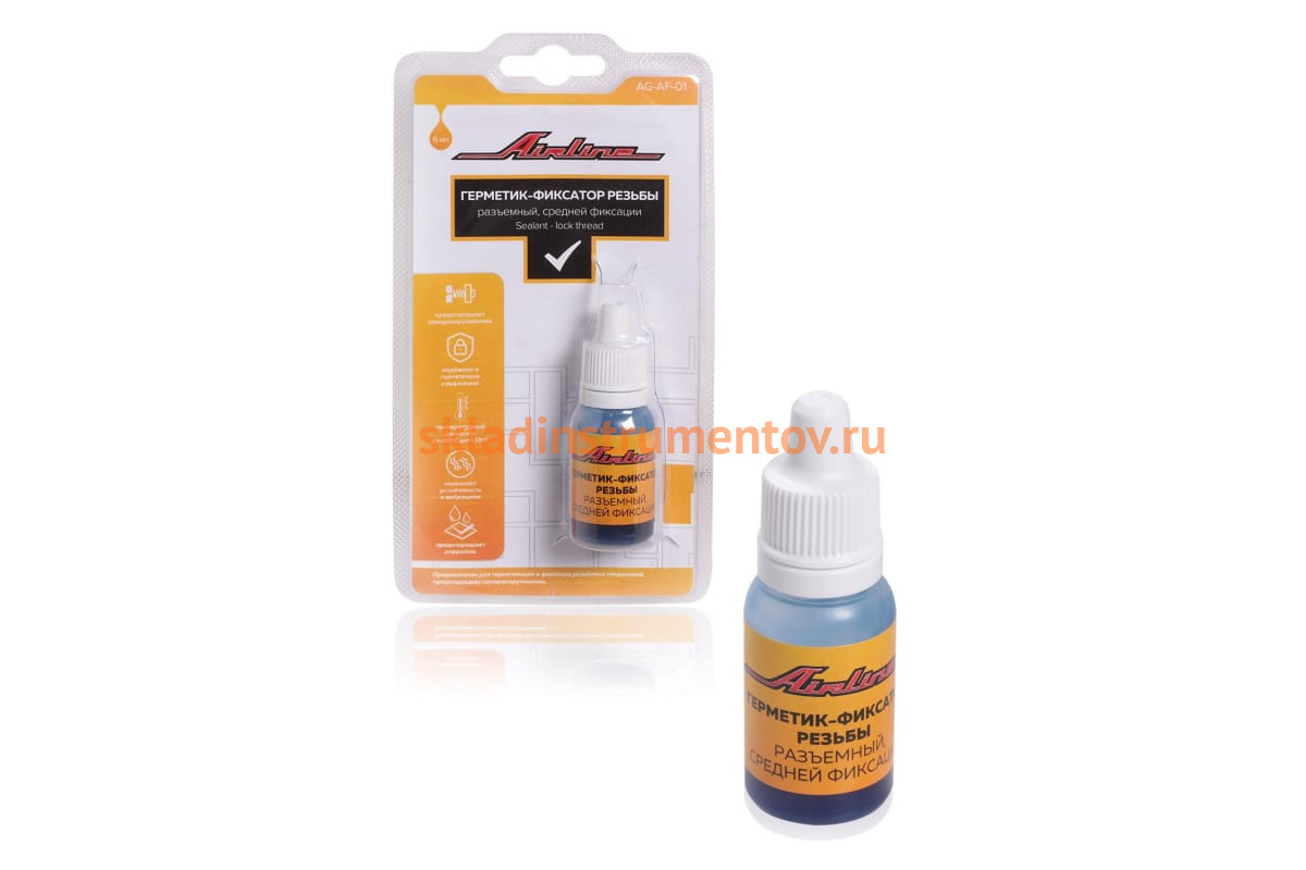 Разъемный герметик-фиксатор резьбы средней фиксации Airline 6 мл. AG-AF-01 предназначен для герметизации и фиксации резьбовых соединений (в том числе трубных). Анаэробный состав полимеризуется в зазорах до 0.4 мм между поверхностями без доступа воздуха.