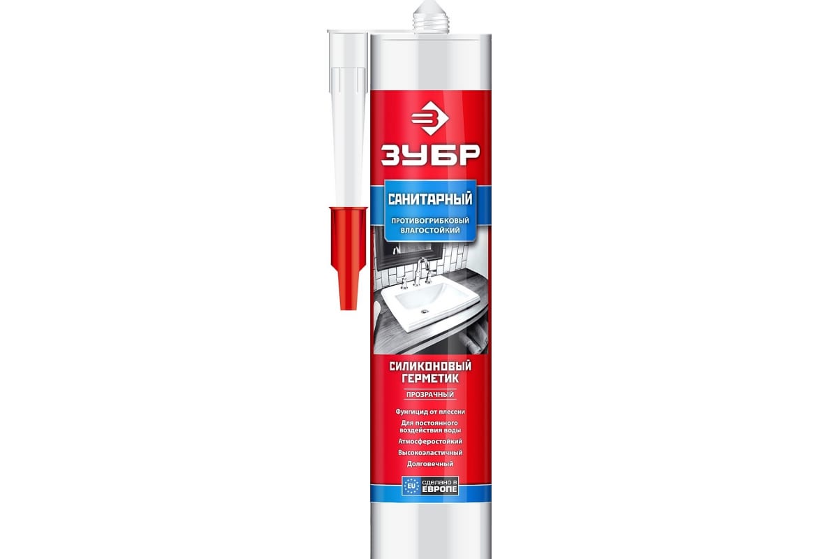 Силиконовый герметик ЗУБР 280 мл, санитарный, прозрачный 41235-2 в своем составе не содержит растворителей и является водостойким. Его применяют для работ в помещениях с высокой влажностью, например, в ванных комнатах. Основа герметика — силикон. Незаменим при уплотнении швов. Поставляется в баллоне с удобным носиком для равномерного распределения герметика на поверхностях.