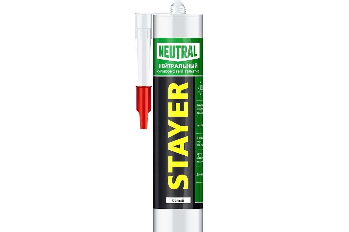 Герметик "MASTER" нейтральный силиконовый белый STAYER 41217-0_z01 необходим во время работ по остеклению окон и уплотнению дверей, а также при сантехнических работах в случае отсутствия контакта с питьевой водой. Прочно герметизирует швы, стыки, щели. После герметика поверхность окрашивать нельзя. Подходит как для внутренней, так и для внешней отделки. Совместим с различными материалами, в том числе бетон, камень, стекло, металл, дерево, пластик, резина. Можно использовать при температуре от +5 до +40 0С.