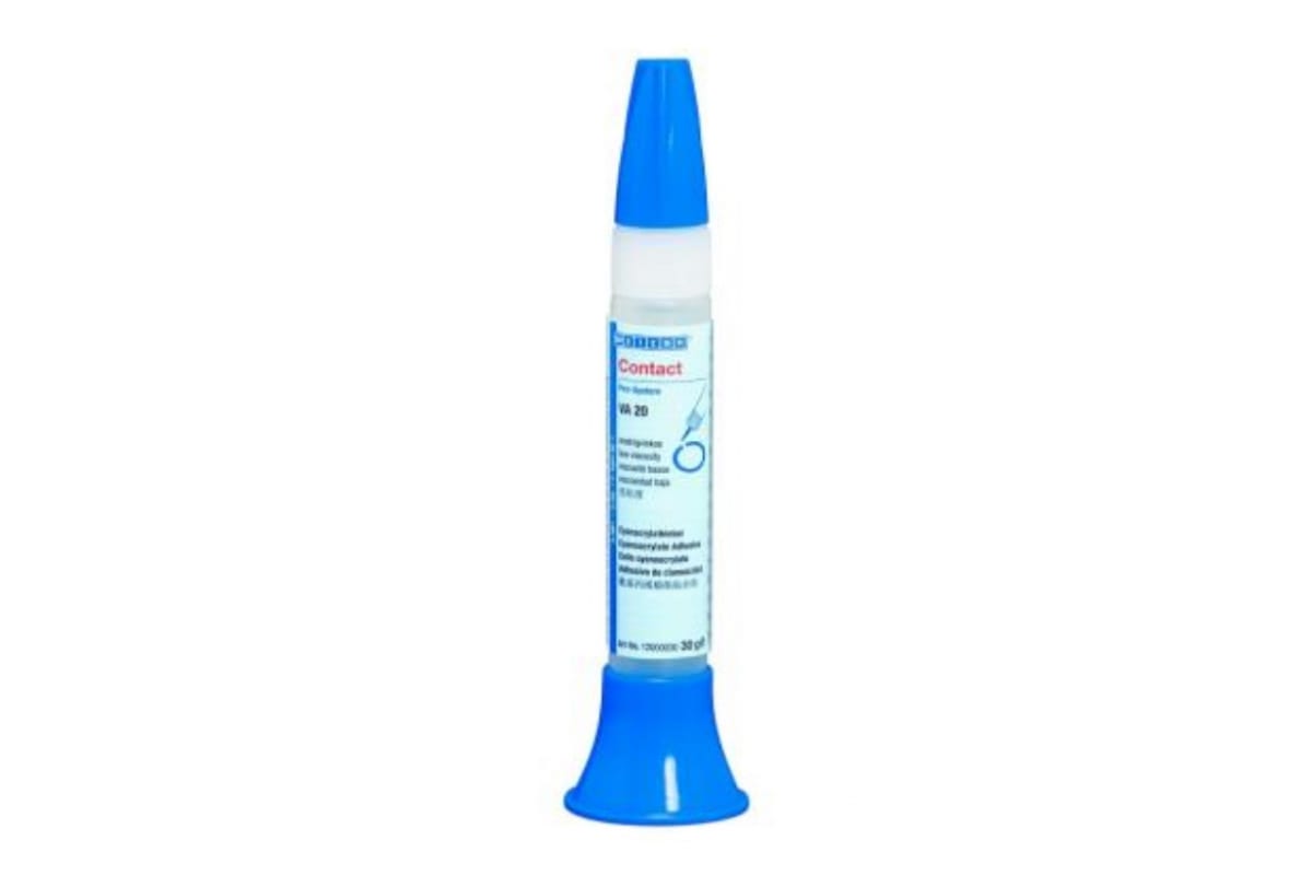 Цианоакрилатный клей WEICON Contact VA 20 12 г wcn12000012 - это холоднозастывающий однокомпонентный состав без содержания растворителя. Склеивание осуществляется за секунды. Рекомендуется для таких матриалов, как металл, пластмасса, стекло, керамика, дерево, кожа, резина, где важна точность посадки.