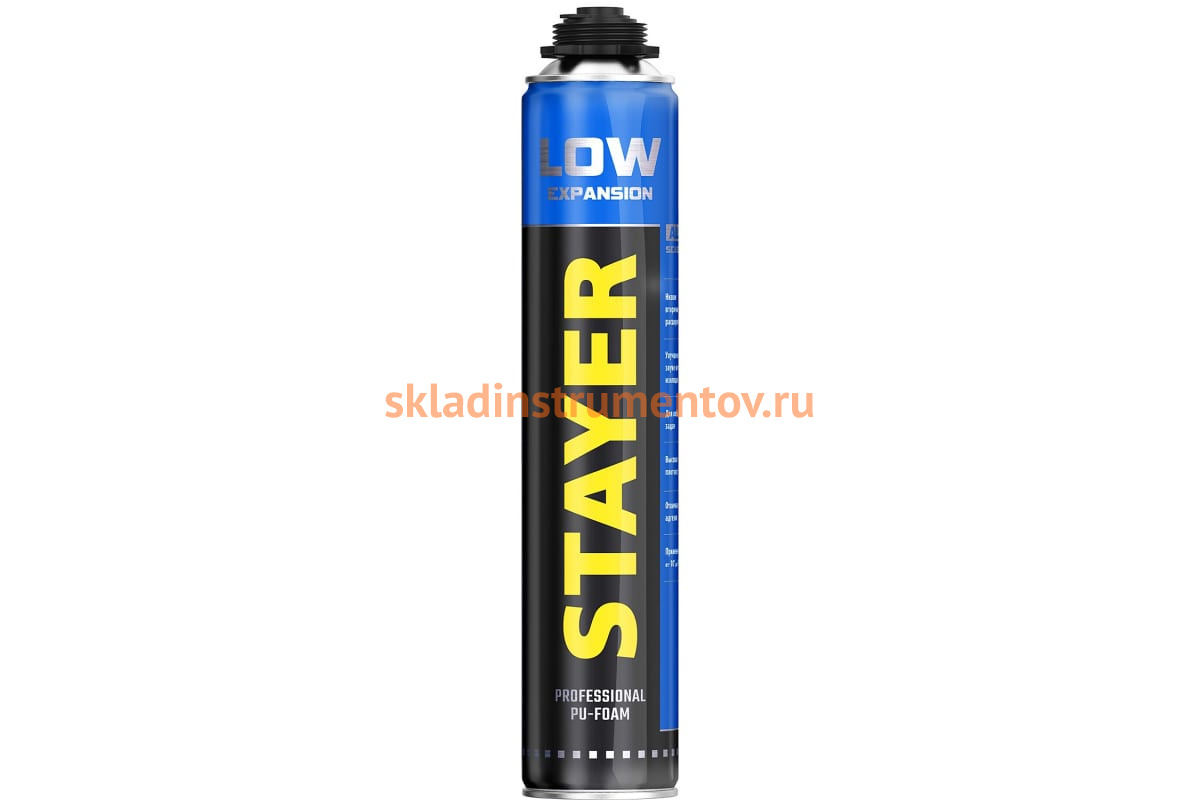 Монтажная пена STAYER LOW EXPANSION 750 мл с низким вторичным расширением, пистолетная, всесезонная 41136 применяется для монтажа и герметизации оконных и дверных блоков, подоконников, а также для изоляции проводки и технических коммуникаций, тепло- и звукоизоляции, заполнения швов, щелей, пустот. Можно использовать в широком температурном диапазоне: от -10 до +35°С.