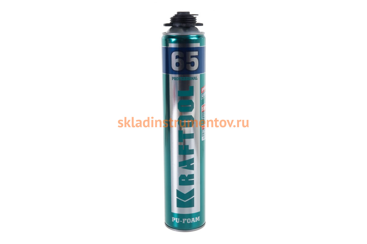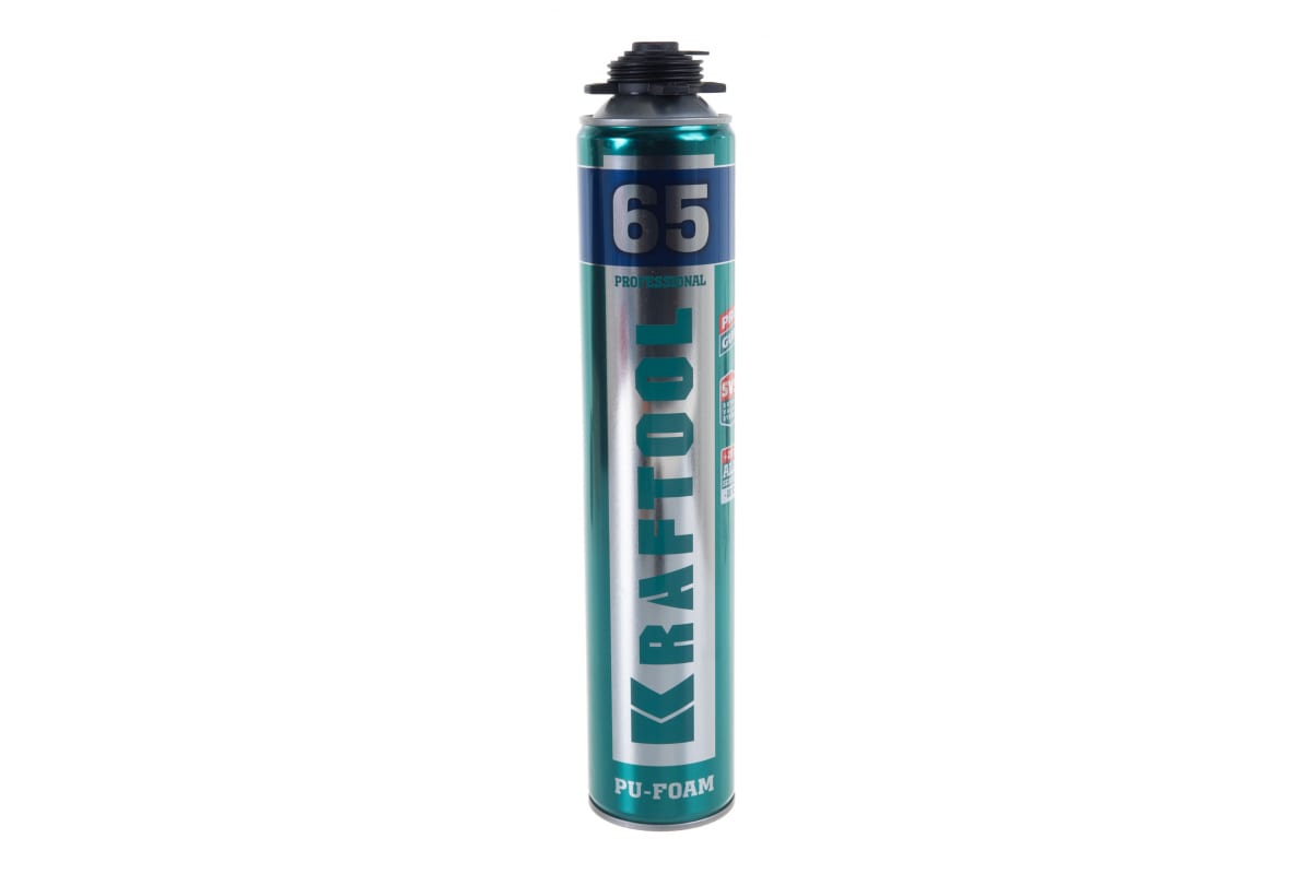 Профессиональная полиуретановая пена Kraftool KRAFTFLEX PROFI 65 для монтажного пистолета, всесезонная, SVS, 850 мл 41184_z01 применяется для монтажа и герметизации оконных и дверных блоков, подоконников, а также для изоляции проводки и технических коммуникаций, тепло- и звукоизоляции, заполнения швов, щелей, пустот. Баллон оснащен суперклапаном SVS, поэтому хранить его можно как в вертикальном, так и горизонтальном положении. Специальный добавки, включенные в состав пены, улучшают ее качество.