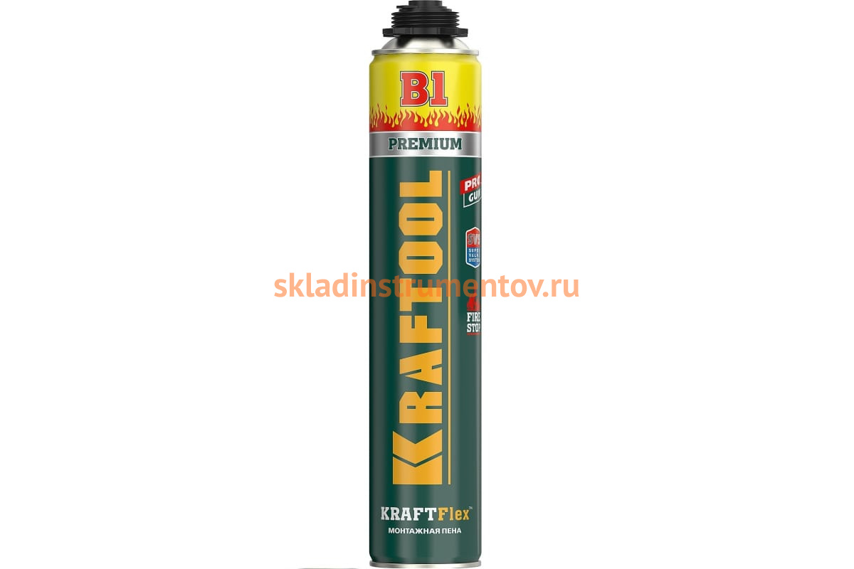 Огнестойкая монтажная пена KRAFTOOL FIRE STOP B1 750 мл, пистолетная, SVS 41186_z01 применяется для изоляции и уплотнений, например, вокруг подоконников, оконных рам, дверных проемов. Благодаря своему составу пена отлично взаимодействует почти со всеми видами материалов. После застывания она обладает хорошими тепло- и шумоизоляционными качествами. Такая пена огнестойкая и не токсичная (класс пожарной безопасности - В1), устойчива к старению, если на нее не попадают ультрафиолетовые лучи. После нанесения расширяется в несколько раз.