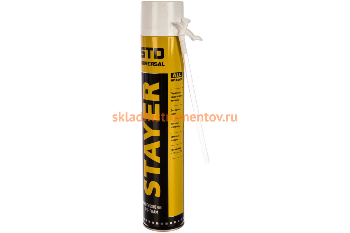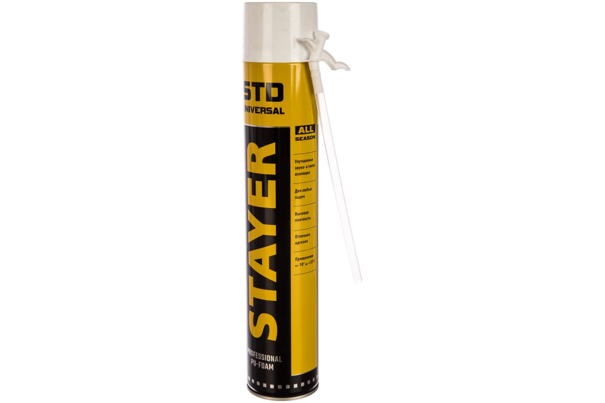 Полиуретановая пена STAYER 41133 используется во время ремонта и строительства. Выход пены составляет 30 литров. Применяется для монтажа и герметизации оконных и дверных блоков, подоконников, а также для изоляции проводки и технических коммуникаций, тепло- и звукоизоляции, заполнения швов, щелей, пустот. Можно использовать в широком температурном диапазоне: от -10 до +35°С.