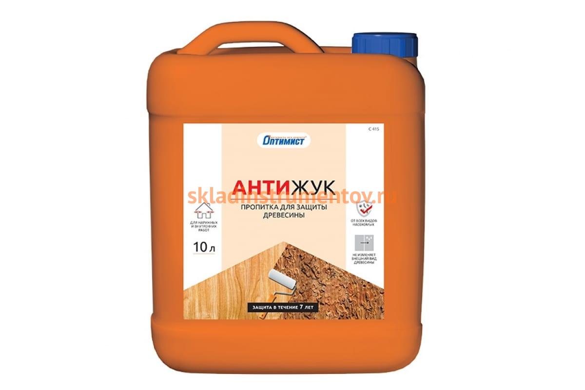 Пропитка Оптимист Антижук для защиты древесины С415 10 л OPI000 применяется для обработки лесо- и пиломатериалов (брусьев, стропил, полов и других конструкций из древесины) с целью защиты от всех видов насекомых.