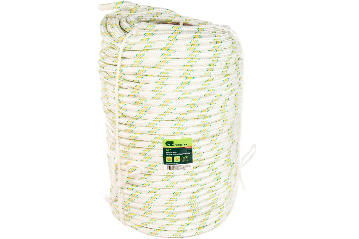 Плетеный 24-прядный капроновый фал с сердечником 10мм, бухта 100м, 1300кгс СИБРТЕХ Россия 93971 подходит для грузоподъемных операций в области спасательных работ, строительства, нефтедобывающей промышленности и пр. Изделие не подвержено негативному воздействию химикатов, высоких температур (до 215°С), грибку и плесени. Фал долговечен, не гниет со временем.
