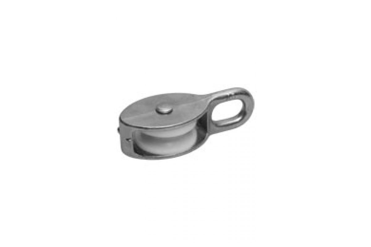 Одинарный блок Зубр 4-304585-30 изготовлен из оцинкованной стали, поэтому не подвержен коррозии и служит долго. Он необходим для изменения направления движения каната, а также для увеличения силы в грузоподъемном оборудовании. Блок имеет шкив, который изготовлен из нейлона и предназначен для неметаллических канатов. Размер блока: 8х30 мм.