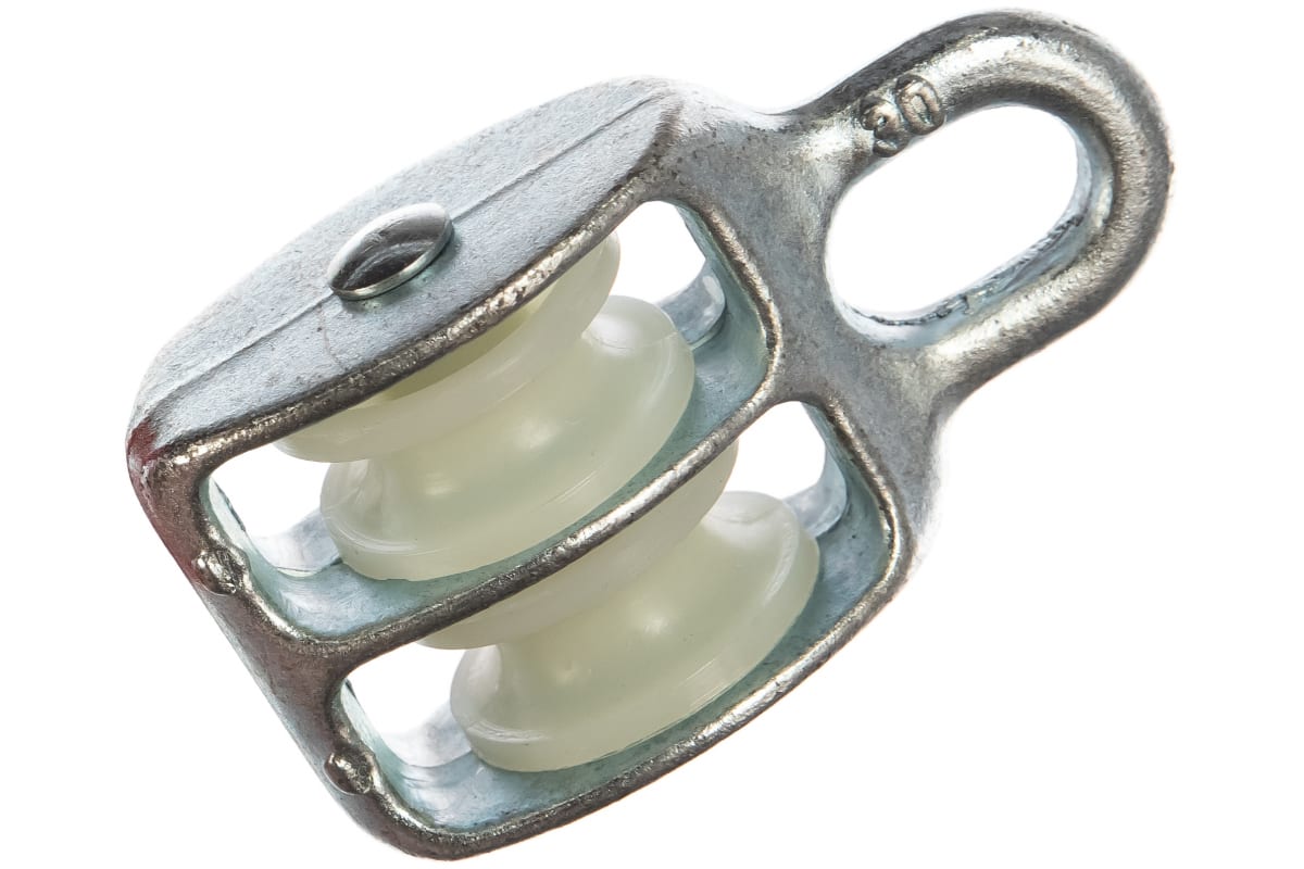 Двойной блок Зубр 4-304596-30 изготовлен из оцинкованной стали, поэтому не подвержен коррозии и служит долго. Он необходим для изменения направления движения каната, а также для увеличения силы в грузоподъемном оборудовании. Блок имеет шкив, который изготовлен из нейлона и предназначен для неметаллических канатов. Размер блока: 8х30 мм.